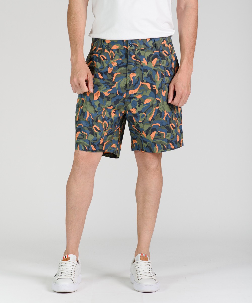 Bermuda de gabardina estampada con mezcla de elasticidad para mayor confort de uso. De corte recto con pinzas en el delantero generando amplitud. Bolsillos diagonales en el delantero, y un bolsillo ojal con botón en el trasero. Producto importado, con materiales y terminaciones de excelente calidad.