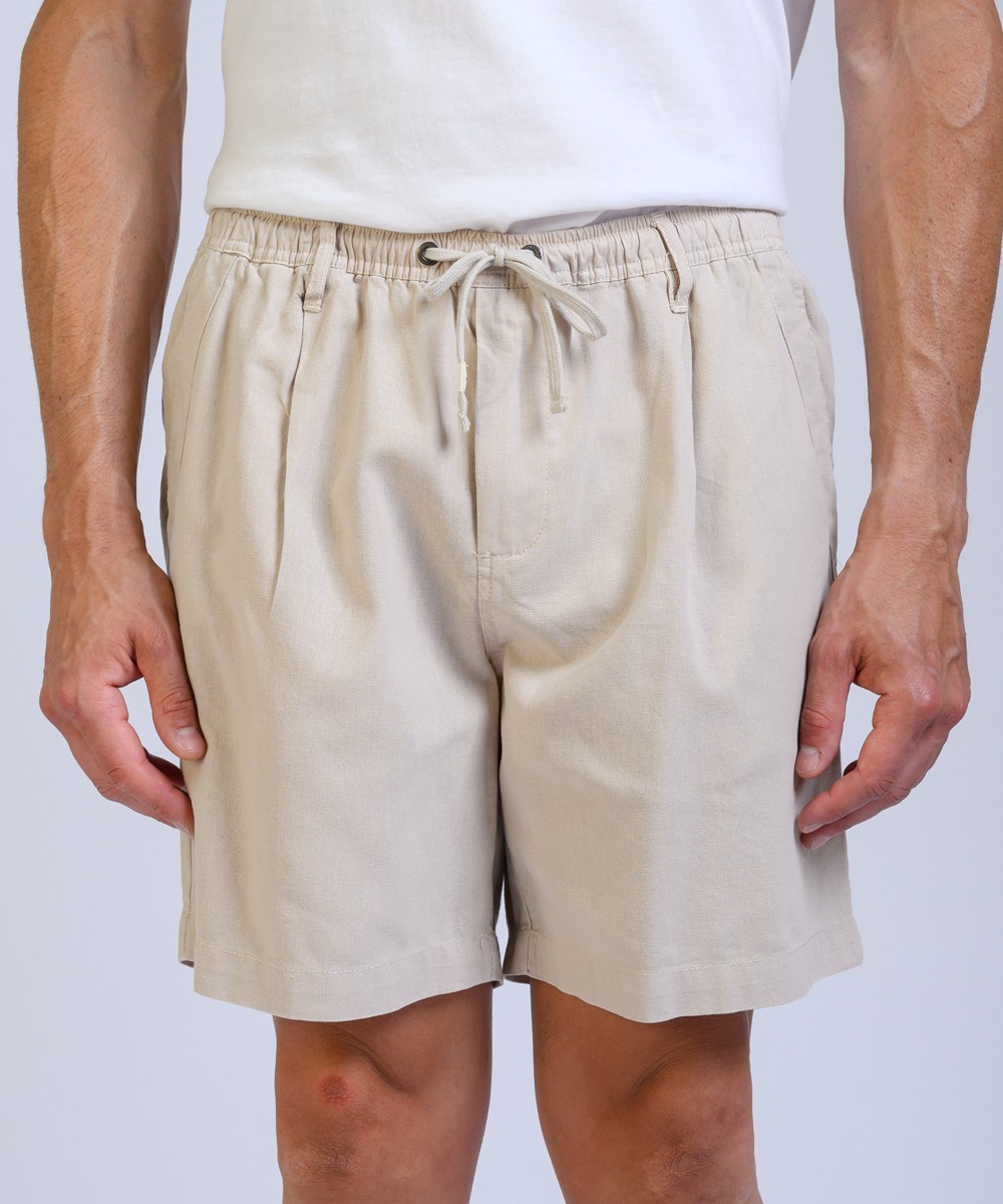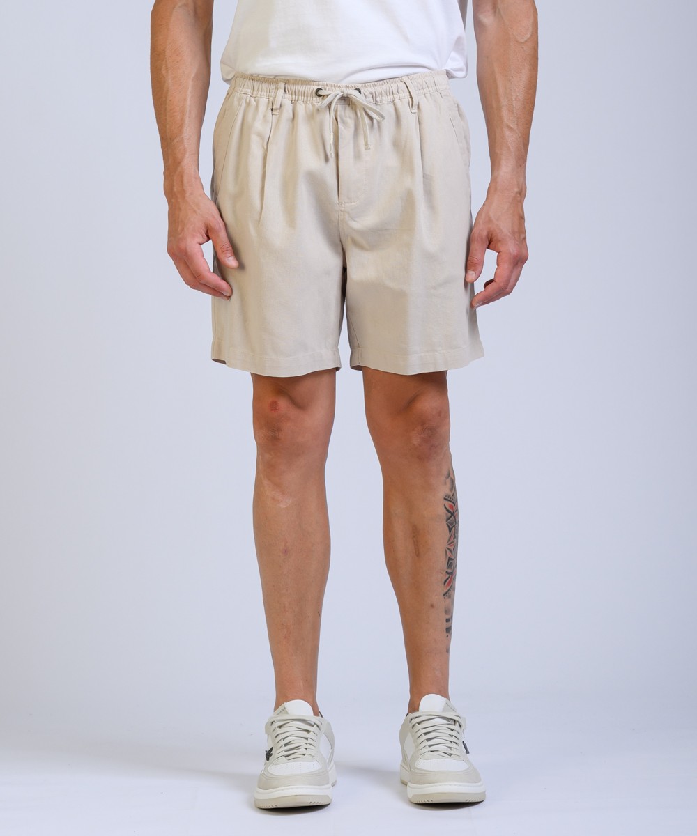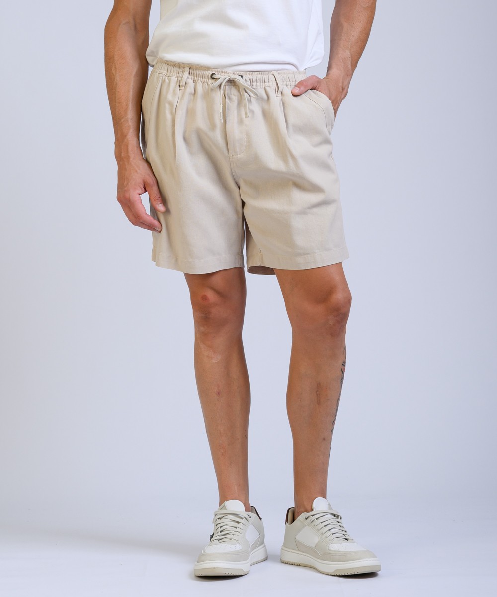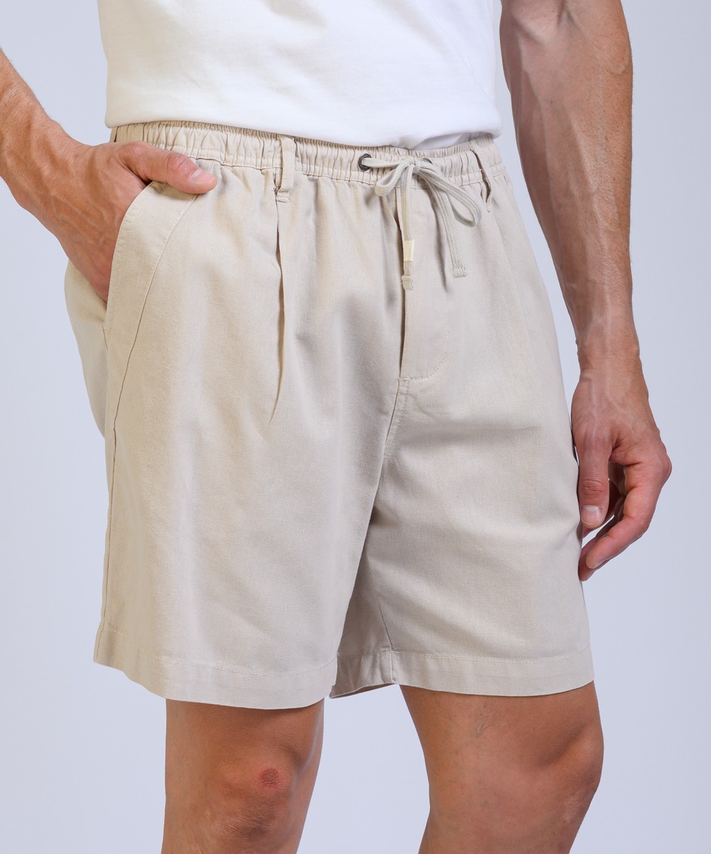 Bermuda regular fit confeccionada en lino de textura natural, combina frescura y distinción en una silueta relajada. La cintura elástica con cordón regulable se complementa con presillas para cinturón, mientras que las pinzas frontales aportan estructura y amplitud en la zona de cadera, favoreciendo el calce. Moldería de tiro intermedio, con bolsillos delanteros amplios y dos bolsillos traseros con cierre por botón. Producto importado, con terminaciones precisas y calidad superior.