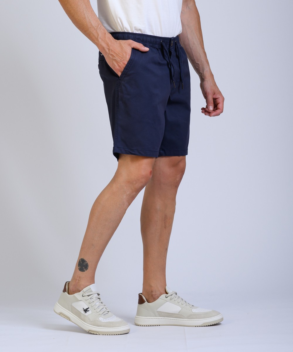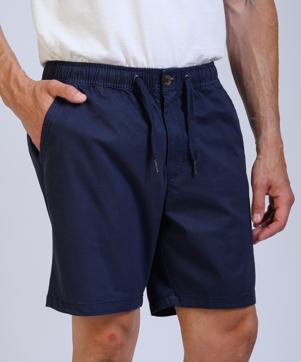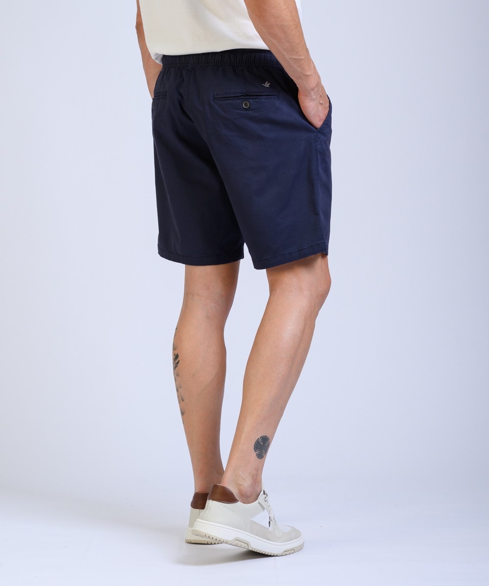 Bermuda regular fit confeccionado en gabardina 100% algodon, presenta cintura elástica con cordón ajustable, su textura natural y estilo casual lo convierten en una opción cómoda y versátil para un look fresco.