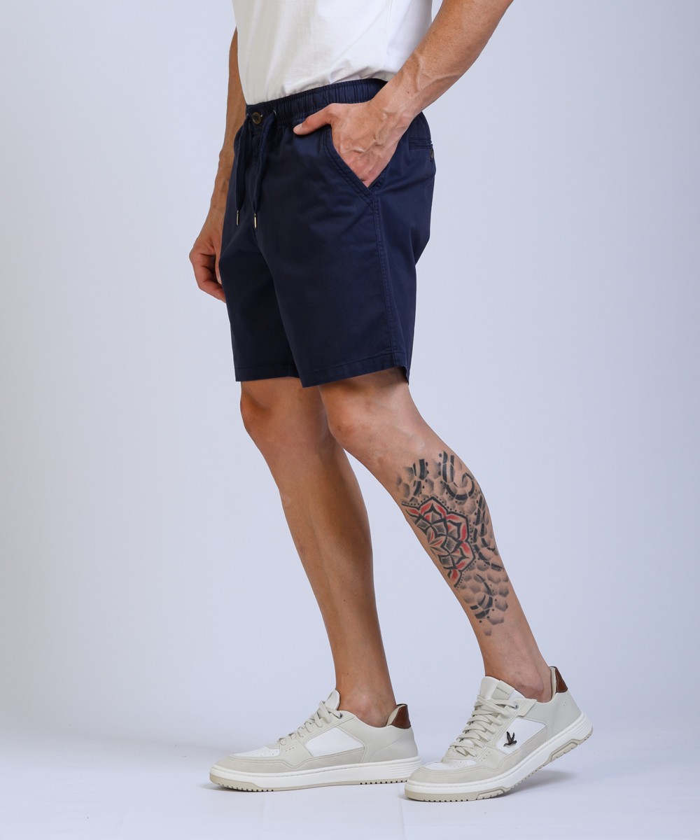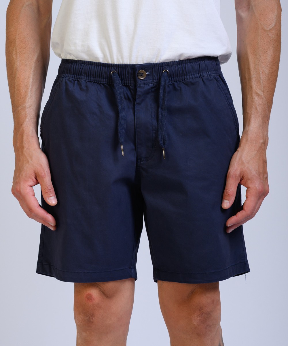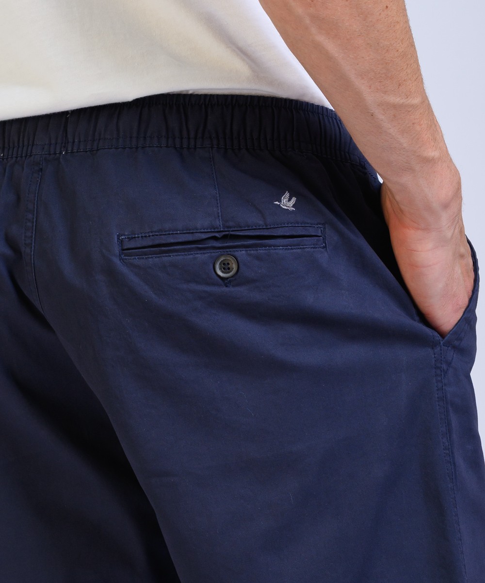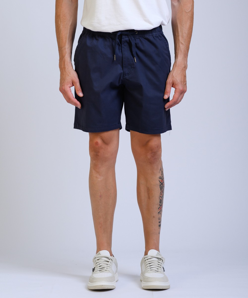 Bermuda regular fit confeccionado en gabardina 100% algodon, presenta cintura elástica con cordón ajustable, su textura natural y estilo casual lo convierten en una opción cómoda y versátil para un look fresco.