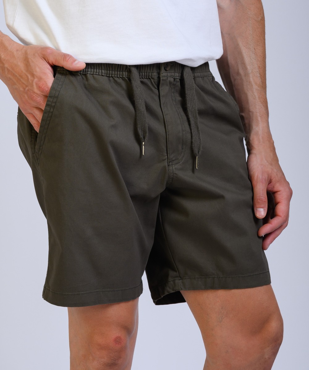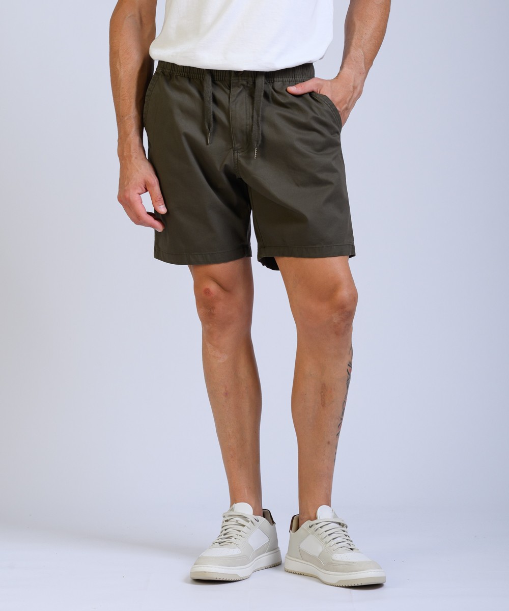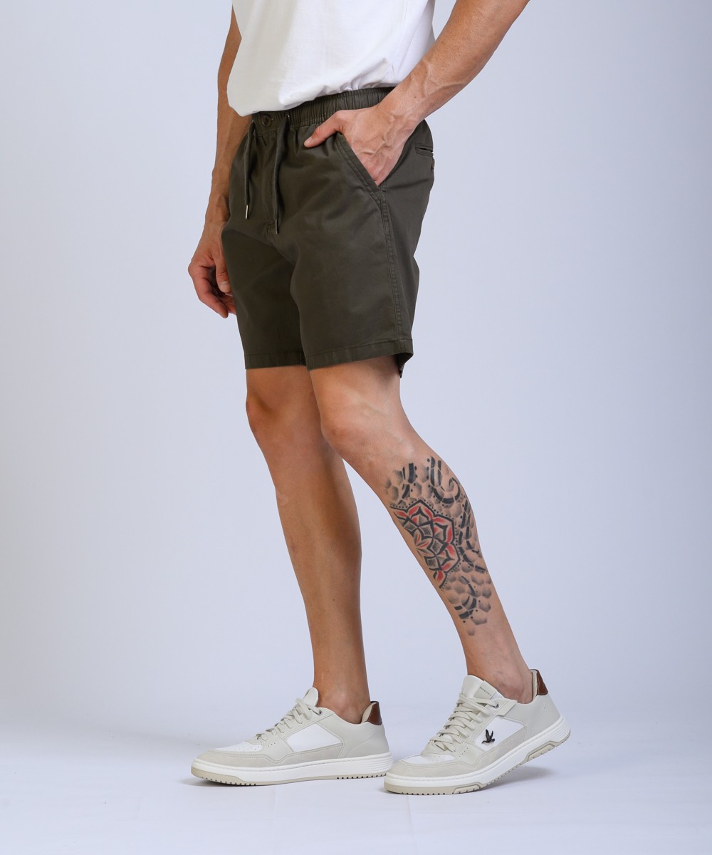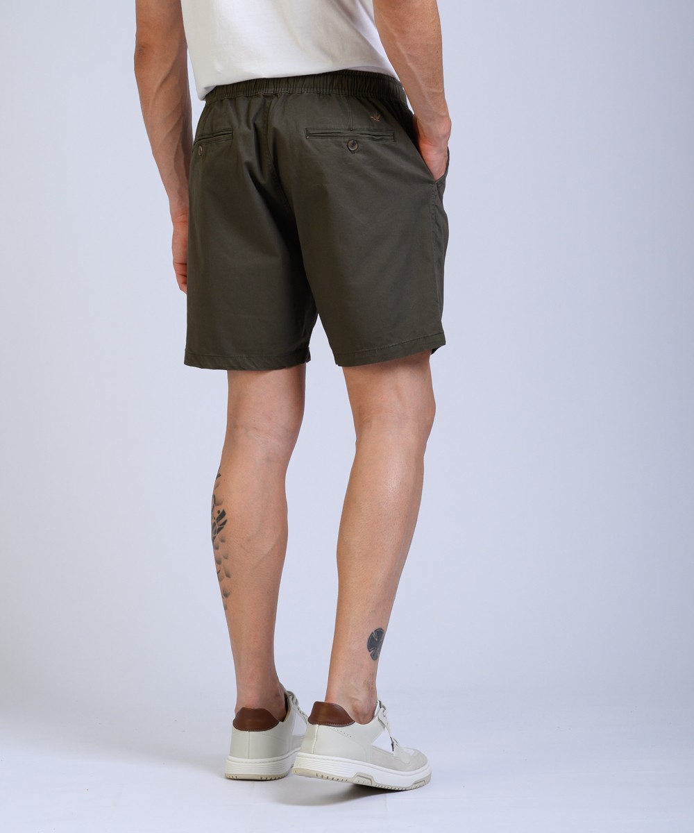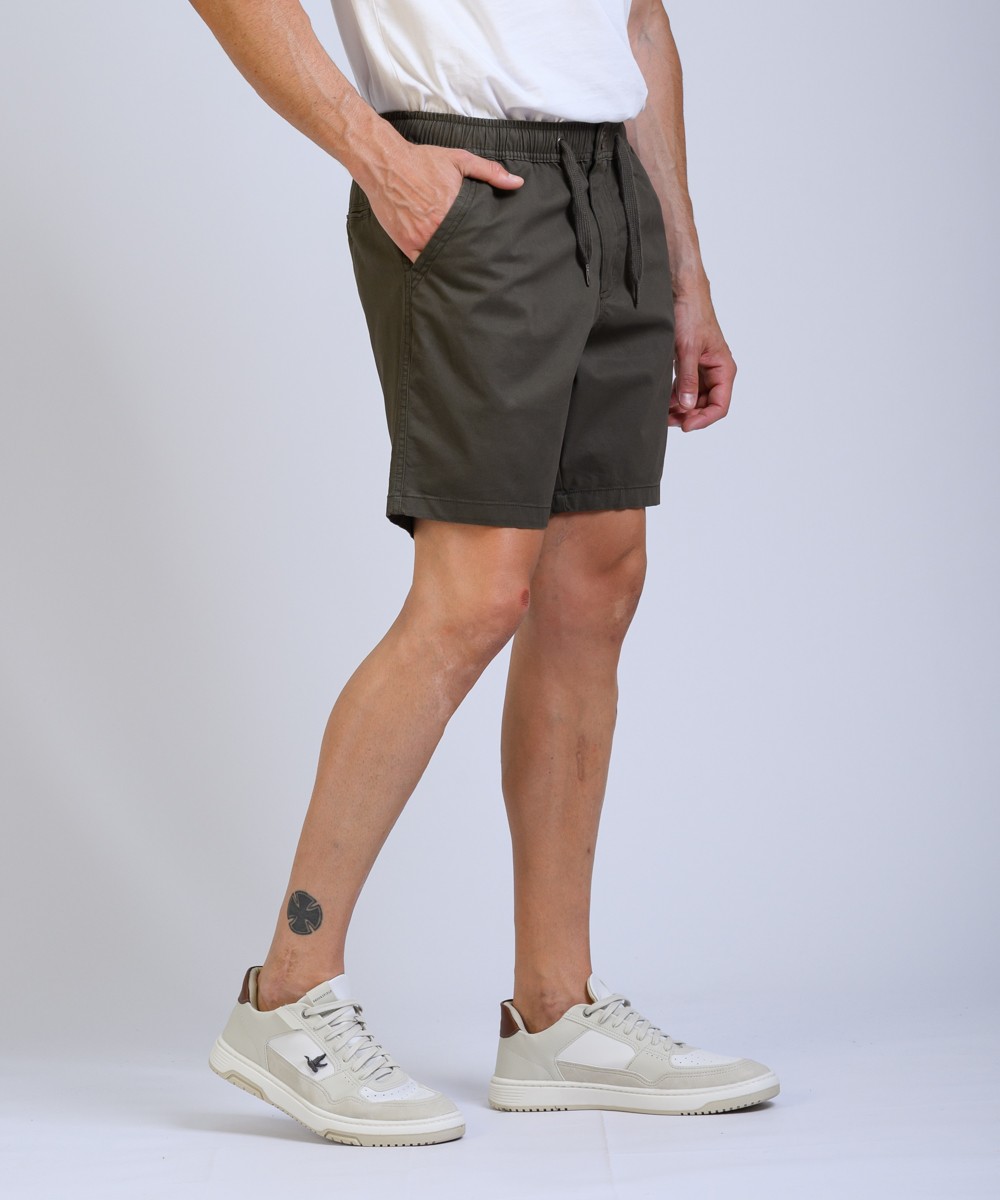 Bermuda regular fit confeccionado en gabardina 100% algodon, presenta cintura elástica con cordón ajustable, su textura natural y estilo casual lo convierten en una opción cómoda y versátil para un look fresco.