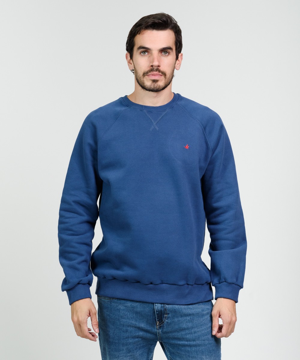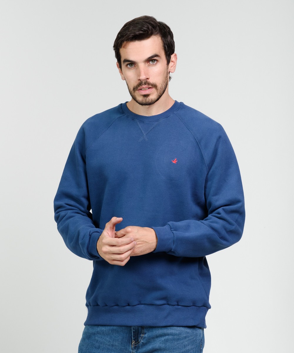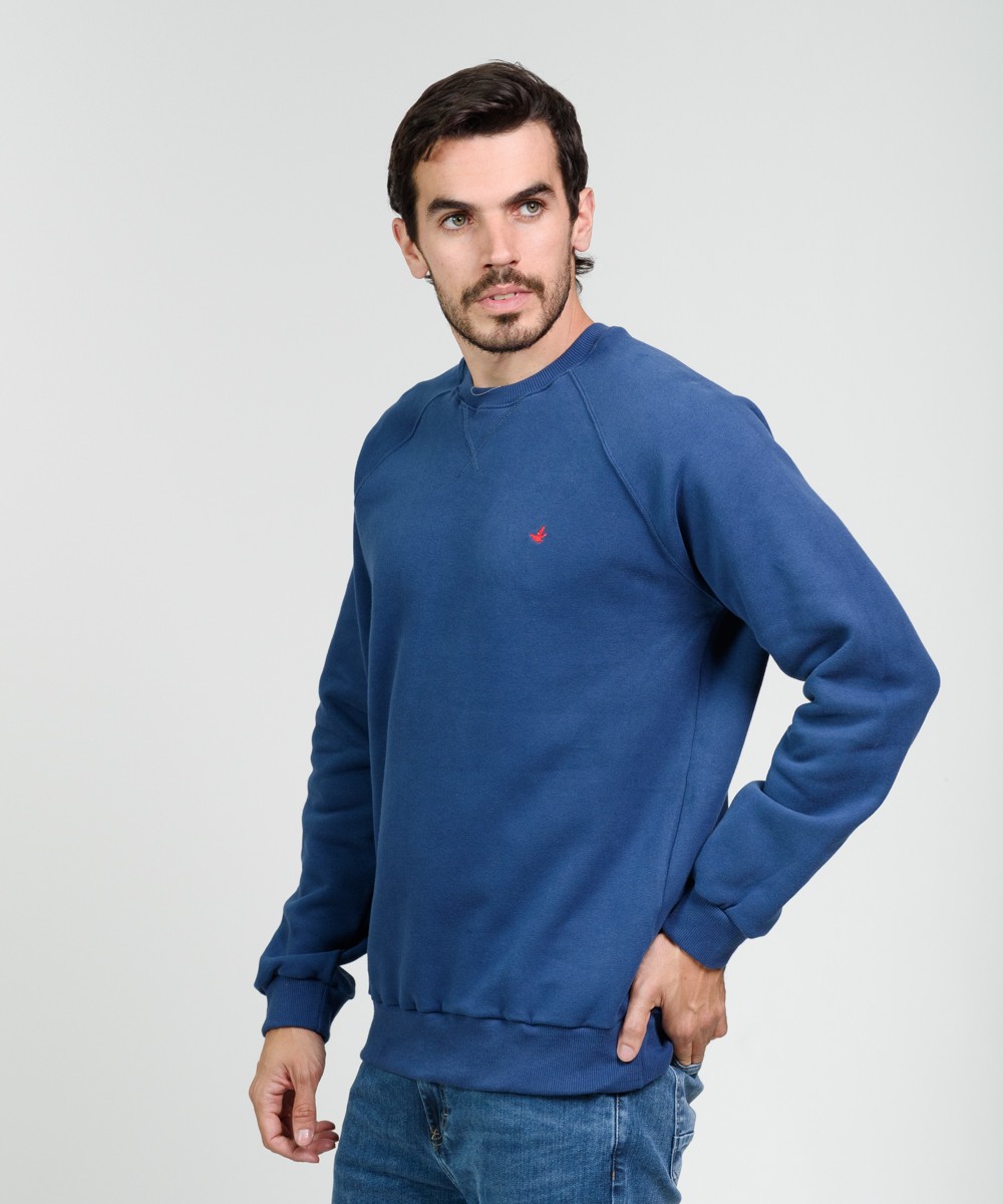 Buzo cuello redondo con manga ranglan de algodón frisado de muy buen gramaje peso densidad. Realizada con materiales y confección de primera calidad, excelente calce. Puños y cintura de reeb elástico. Logo bordado en el frente a contratono con grifa marcaria en el ruedo.