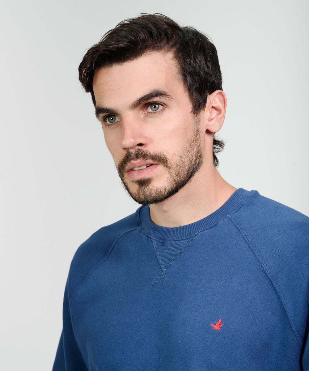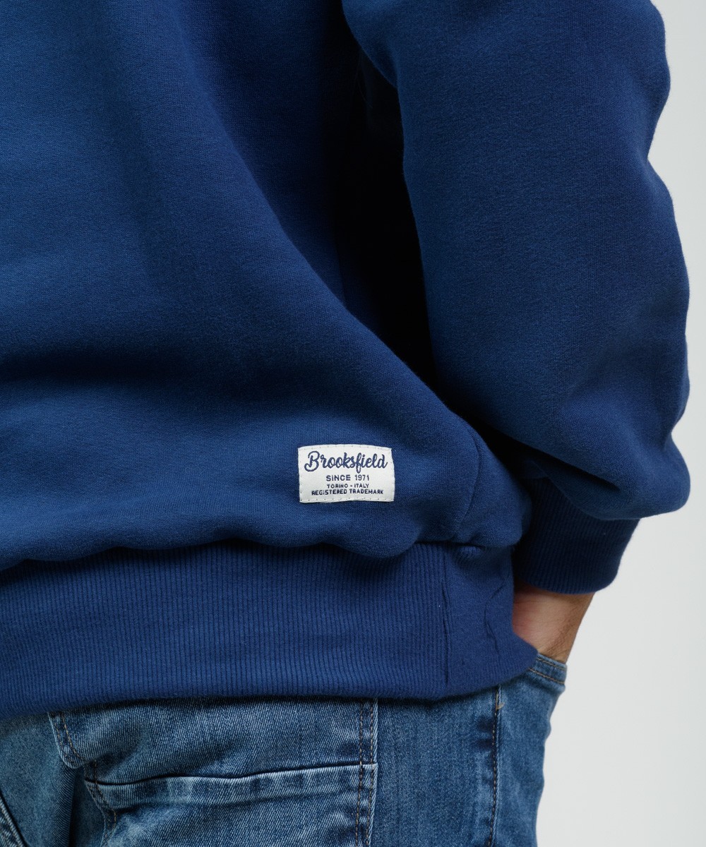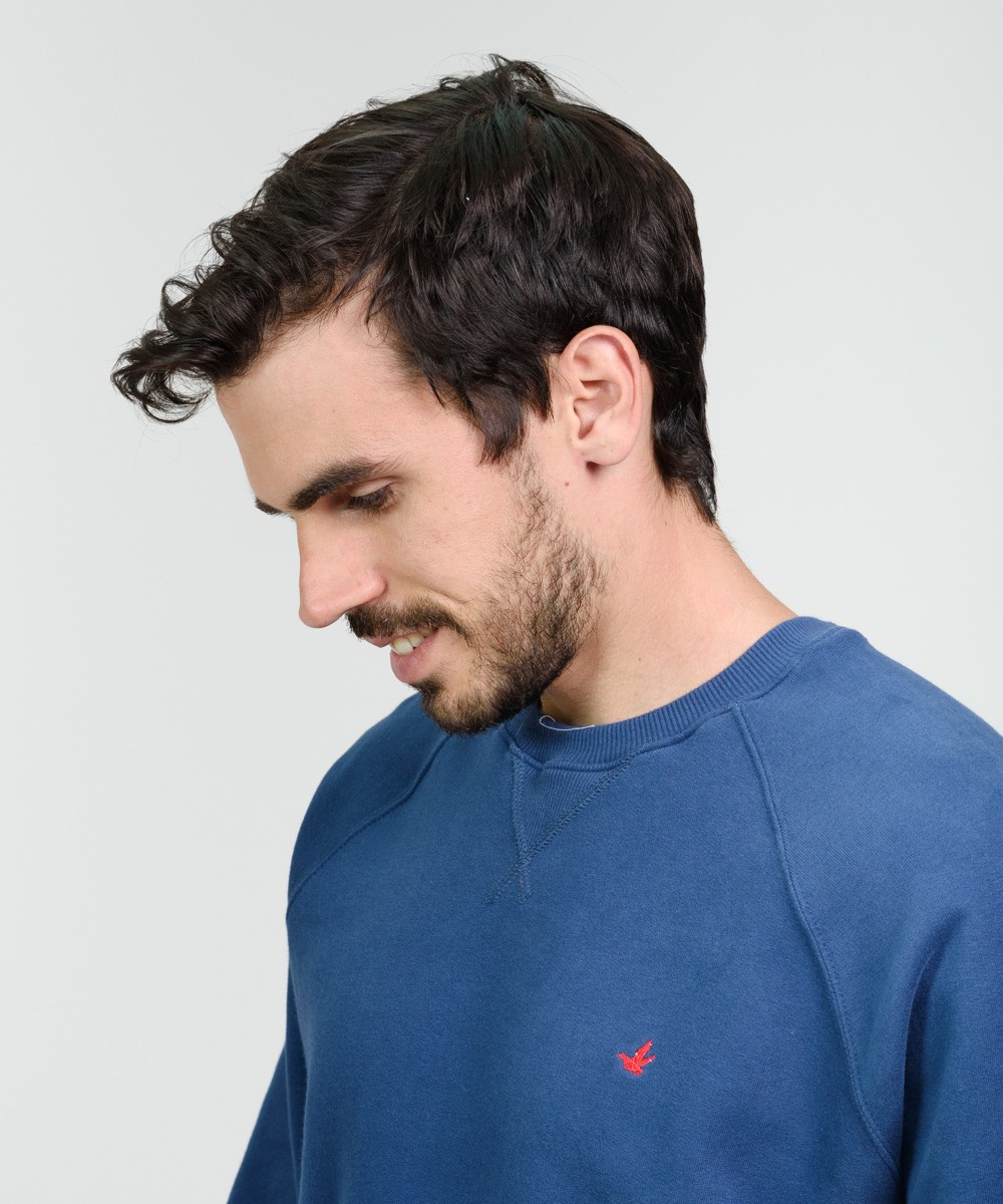 Buzo cuello redondo con manga ranglan de algodón frisado de muy buen gramaje peso densidad. Realizada con materiales y confección de primera calidad, excelente calce. Puños y cintura de reeb elástico. Logo bordado en el frente a contratono con grifa marcaria en el ruedo.