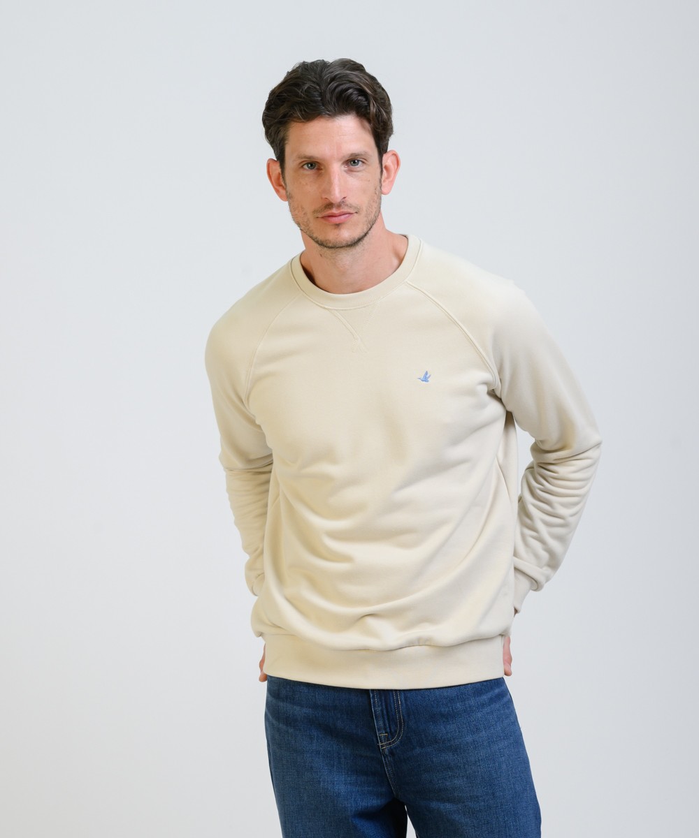 Buzo de algodón con textura natural, diseño clásico y calce slim fit. Confeccionado en algodón liviano, acompaña la silueta sin perder comodidad. Su diseño incluye cuello redondo con detalle en “V” y mangas ranglan que brindan mayor libertad de movimiento. Las terminaciones en rib en puños y cintura aseguran ajuste preciso y buena durabilidad. Una prenda versátil, ideal para un look casual y sofisticado.