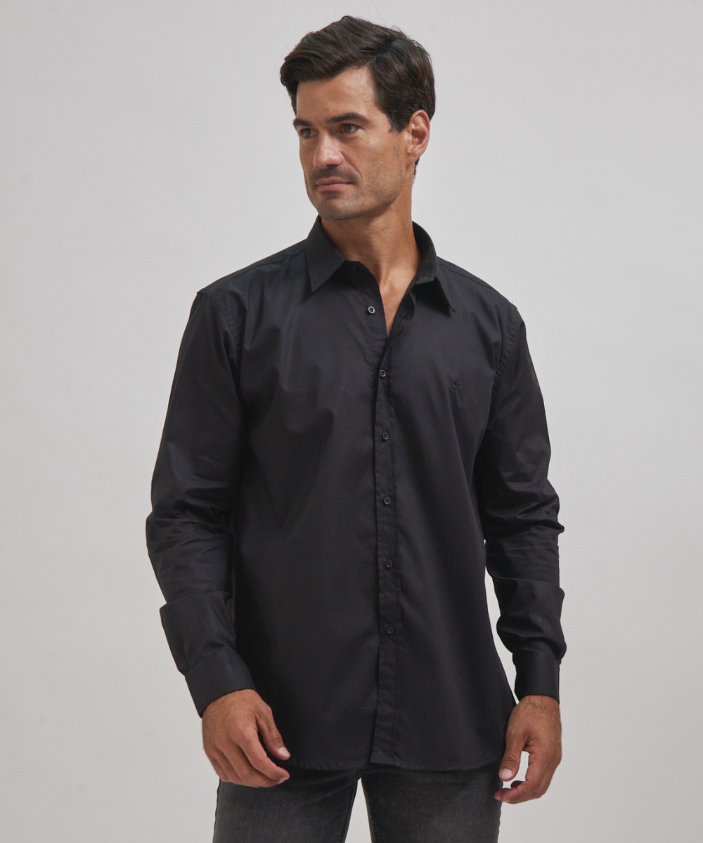 Camisa lisa de corte regular, confeccionada en mezcla de algodón y spandex que brinda suavidad y flexibilidad. Presenta cuello italiano y bordado frontal, un detalle distintivo que suma modernidad. Una prenda versátil para un look casual con un toque original y elegante.