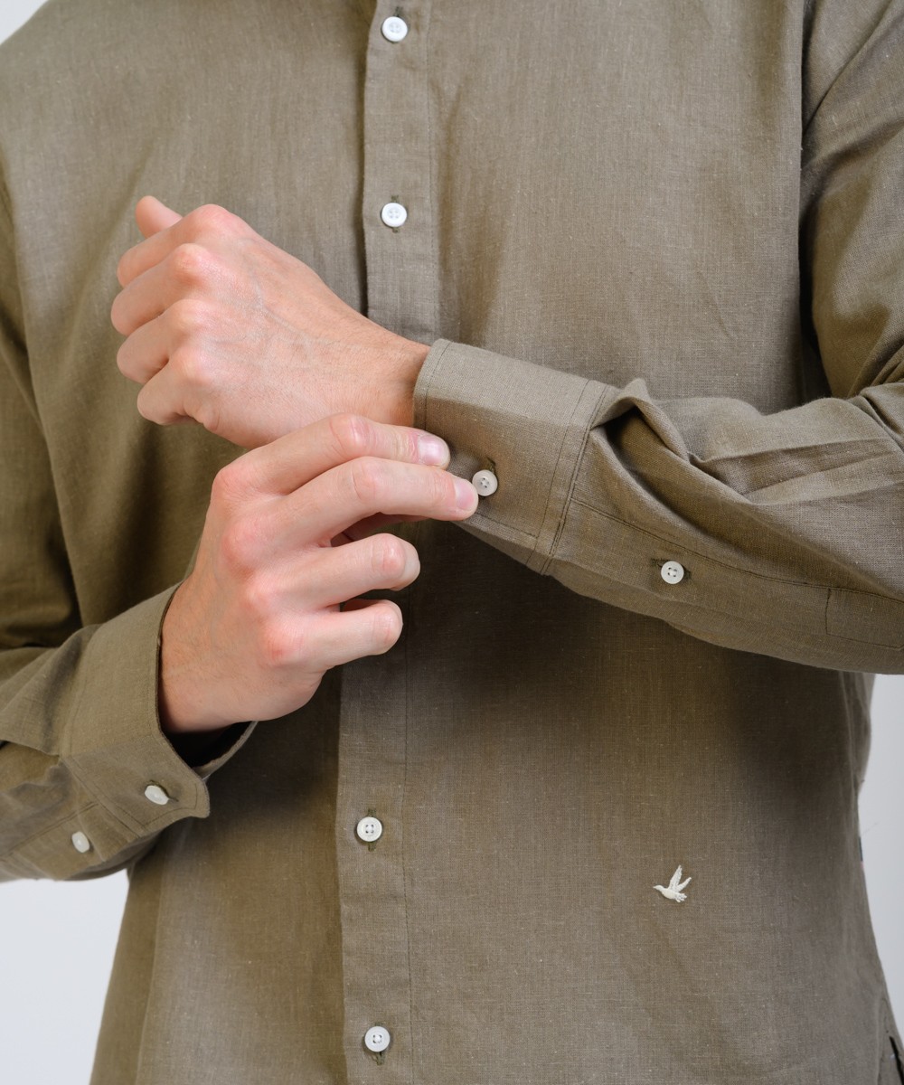 Camisa de composición natural lino algodón. Producto ideal para ser utilizado en verano para mantenerse fresco, su estética formal e informal se adecua perfectamente para combinarlo con bermudas, short, jean o pantalones chinos para una opción más elegante. Es una prenda con cuello italiano para ser utilizada con apertura de dos botones con mangas arremangadas o no, ofreciendo muchas opciones de uso.