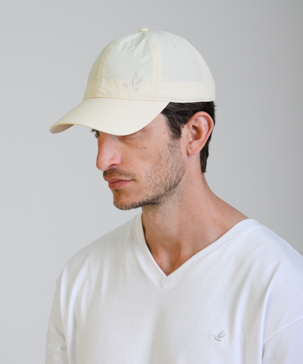 Gorra con visera curva y calce anatómico. Ajuste trasero con tira regulable y hebilla metálica. Confeccionada en tejido sintético resistente al desgaste y a la decoloración. Logo bordado en contratono al frente y marca lateral.