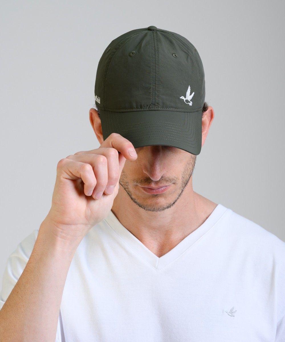 Gorra con visera curva y calce anatómico. Ajuste trasero con tira regulable y hebilla metálica. Confeccionada en tejido sintético resistente al desgaste y a la decoloración. Logo bordado en contratono al frente y marca lateral.