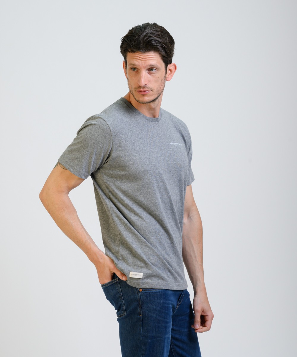 Confeccionada en algodón suave de excelente calidad, esta remera de corte clásico ofrece comodidad y estilo en una sola prenda. El diseño incluye el logo Brooksfield estampado en el pecho y una franja vertical en la espalda con terminación en símbolo bordado, que aporta un toque distintivo y sofisticado. Ideal para uso diario o para sumar elegancia a un look casual.