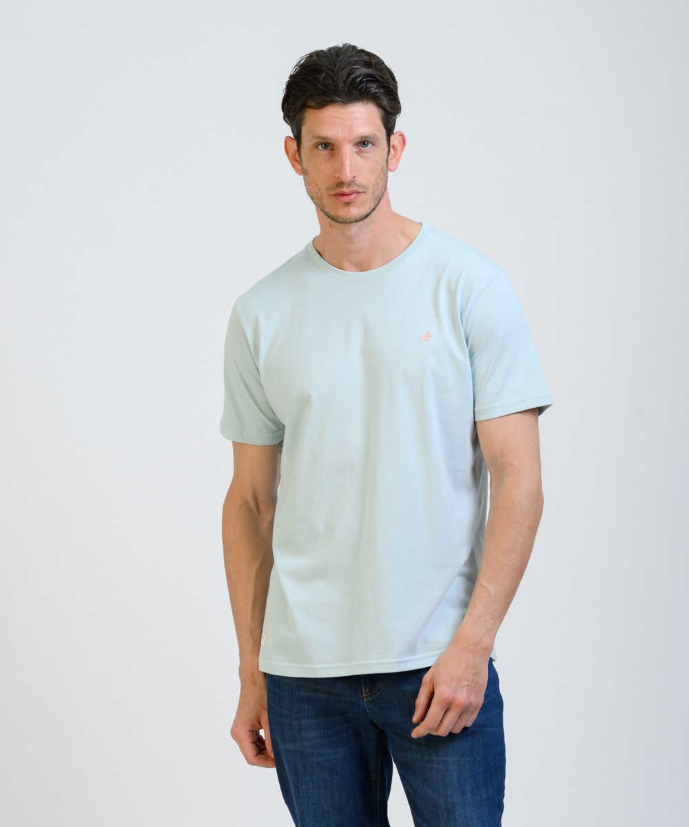 Remera de algodón jersey de excelente calidad. Corte recto clásico amplio de mangas corta y cuello redondo a la base. Logo de la marca bordado a contratono. Detalle de grifa etiqueta marca en el ruedo inferior.