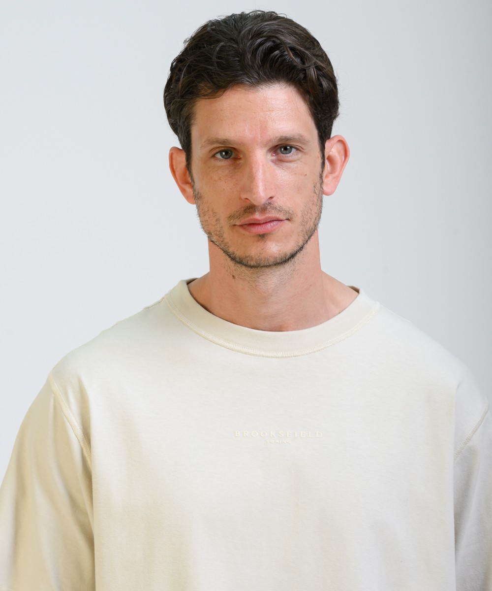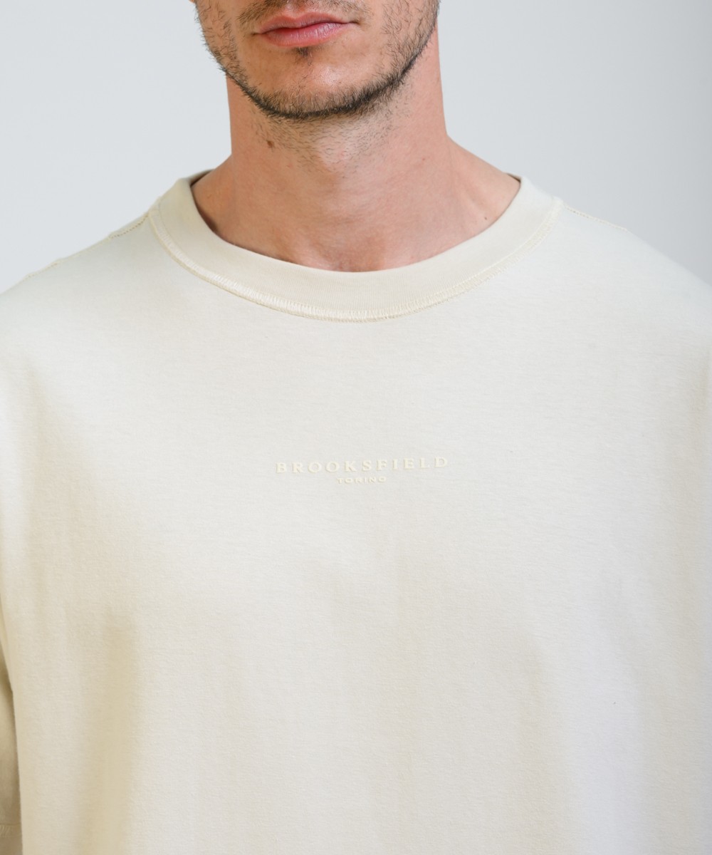 Remera corte amplio manga corta confeccionada en jersey suave y confortable. Su composicion es 100% algodón peinado 16/1 más pesado, resistente, ideal para quienes requieren más durabilidad y estabilidad ante el uso. Gracias a su composición, este tejido en algodón tiene una buena absorción y respetabilidad. Su calce es boxy con cuello redondo ancho, y costuras con bordador. Estampa central con leve relieve.