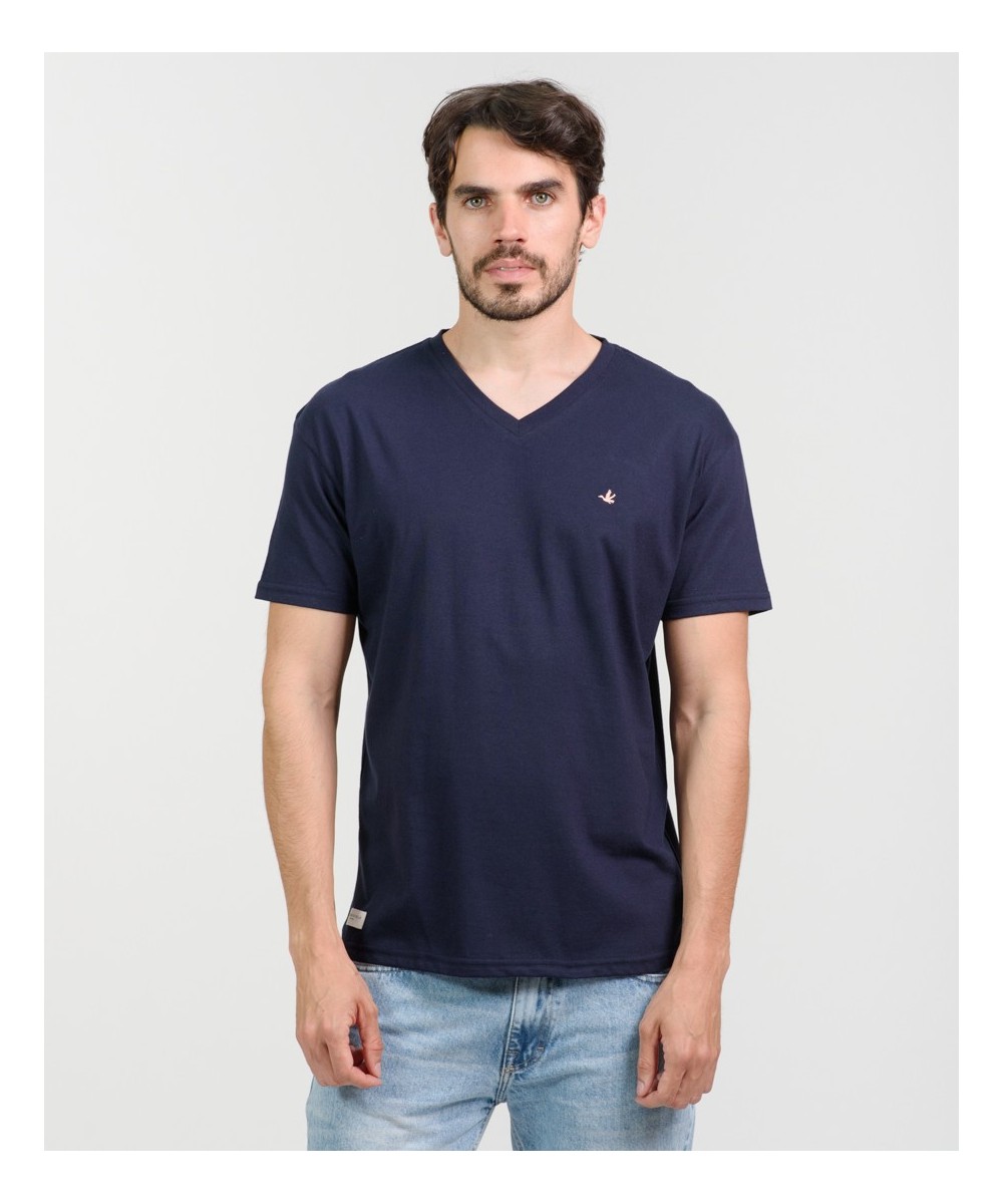 Remera de jersey de algodón premium. Corte recto clásico, de manga corta y escote en V a la base del cuello. Logo de la marca bordado a contratono en el pecho.