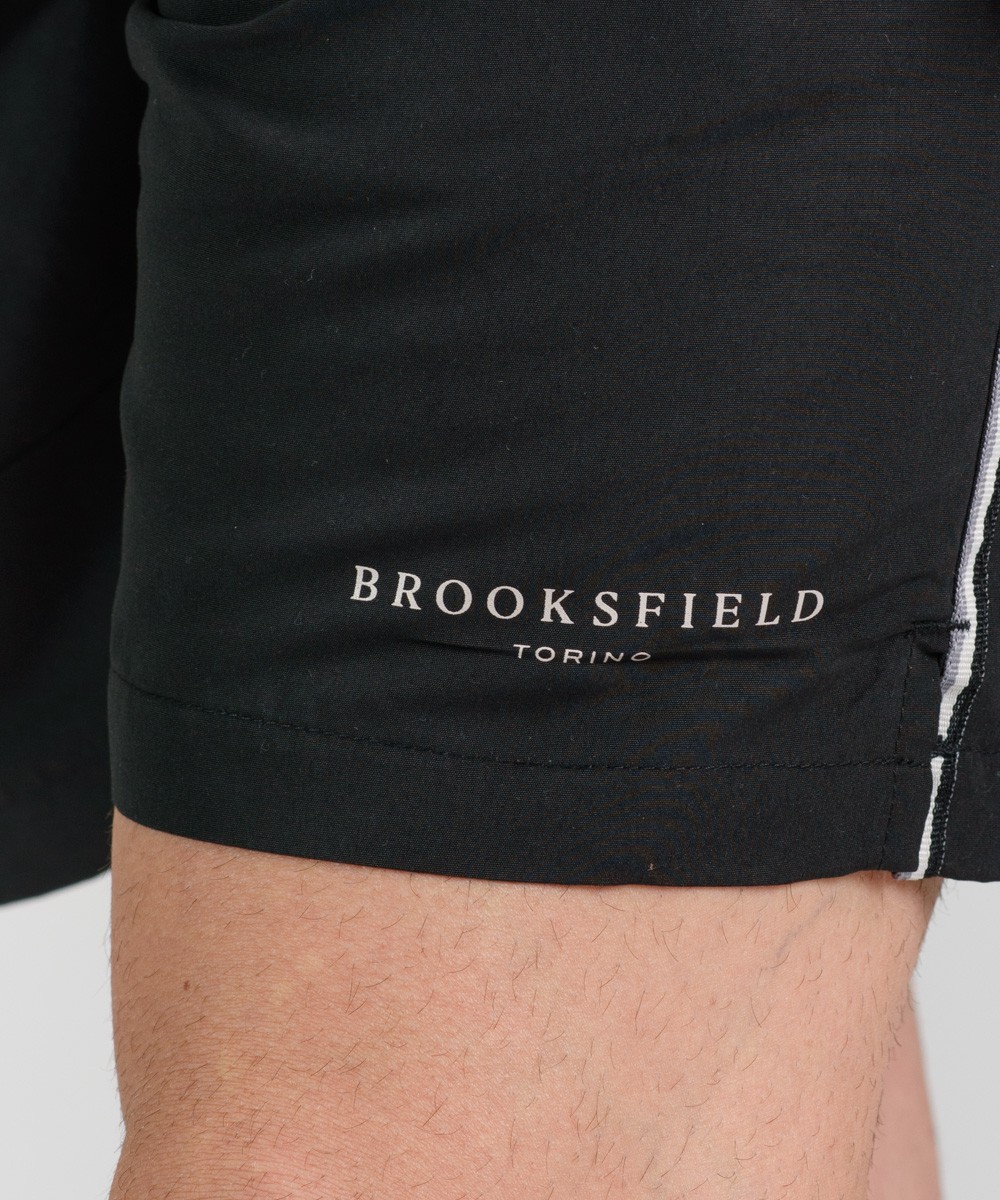 Short de baño en microfibra de rápido secado y suspensor interno brindando mayor comodidad. Posee cintura elástica con cordón regulable, detalle de vivos laterales en contraste que realzan el diseño, logo Brooksfield Torino estampado en el frente y bolsillo trasero con tapa y etiqueta; calce relajado, pensado para acompañar días de verano con estilo y funcionalidad.