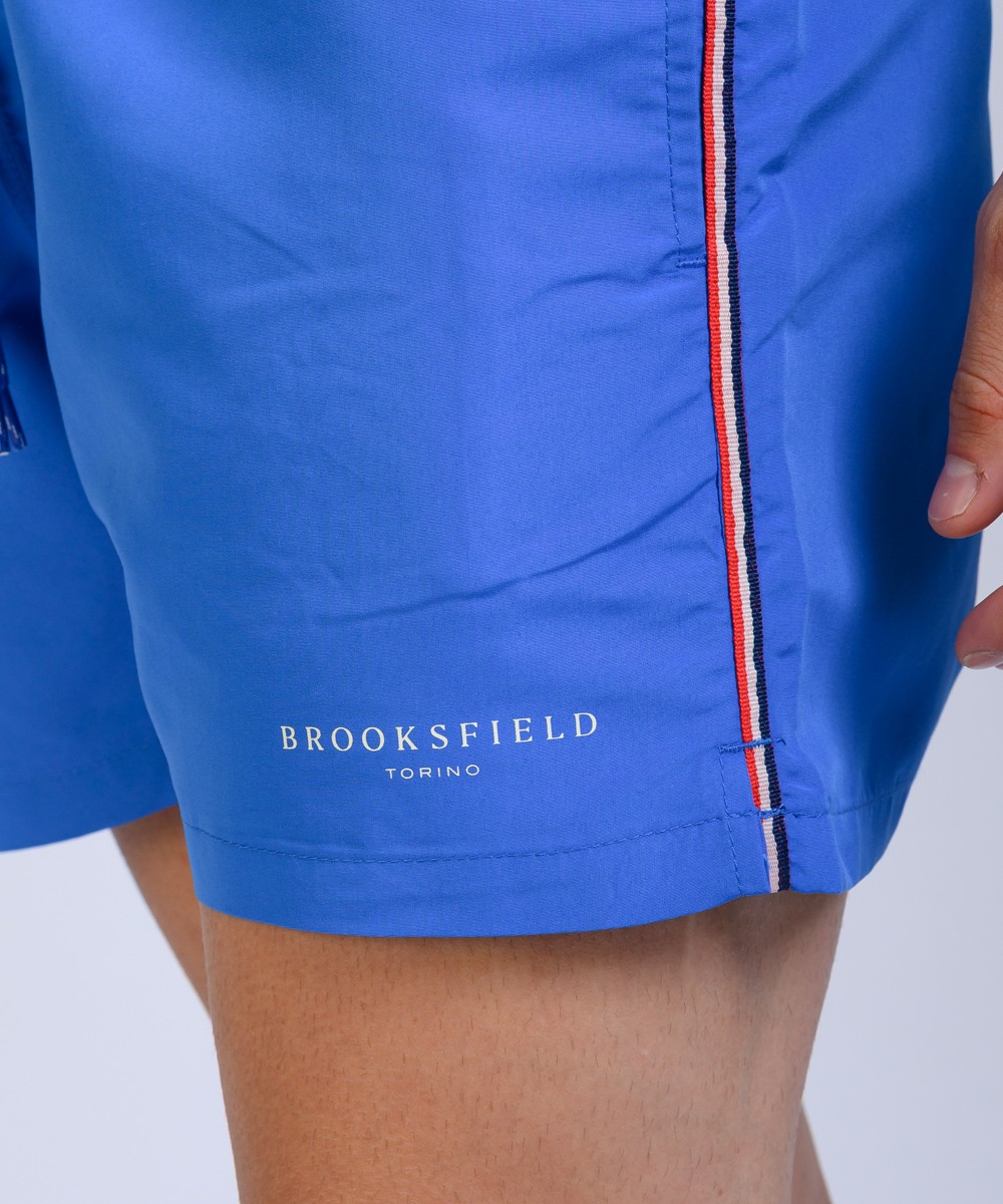 Short de baño en microfibra de rápido secado y suspensor interno brindando mayor comodidad. Posee cintura elástica con cordón regulable, detalle de vivos laterales en contraste que realzan el diseño, logo Brooksfield Torino estampado en el frente y bolsillo trasero con tapa y etiqueta; calce relajado, pensado para acompañar días de verano con estilo y funcionalidad.