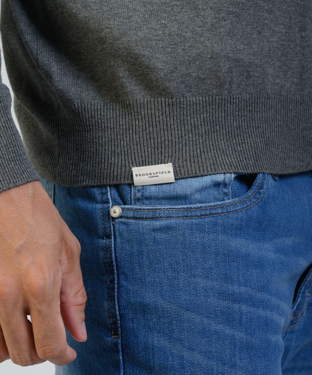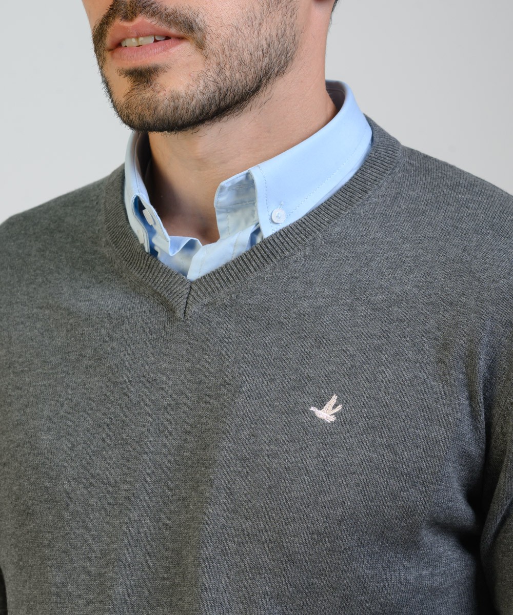Sweater de hilado 100% algodón, ofrece una sutil textura melange que aporta un toque distintivo y versátil. Su calce regular moderno garantiza comodidad y facilidad de combinar con cualquier estilo. Diseñado con un escote V a la base del cuello, incorpora puños y cintura en punto acanalado para un ajuste equilibrado. Como detalle de identidad, cuenta con el logo de la marca bordado en el frente y una grifa marcaria en el ruedo, aportando autenticidad y exclusividad.