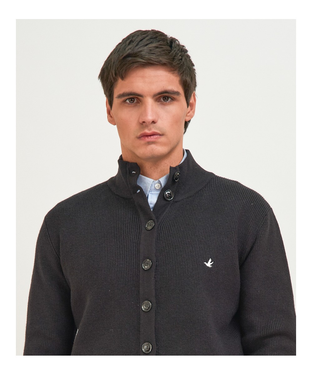 Cardigan de cuello alto con tejido firme y textura definida. Su confección aporta suavidad y resistencia, ofreciendo abrigo confiable y caída natural. Incluye el logo de la marca bordado en el pecho. Una prenda versátil que combina comodidad y estilo, perfecta para acompañar el día a día con un aire relajado y elegante.