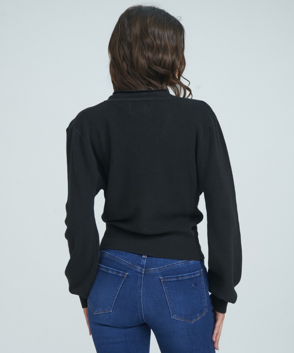 Sweater tejido liviano con textura acanalada y escote en V. De silueta relajada y femenina, con mangas largas abuchonadas que aportan volumen y movimiento. Un diseño versátil que combina comodidad y estilo para distintas ocasiones.
