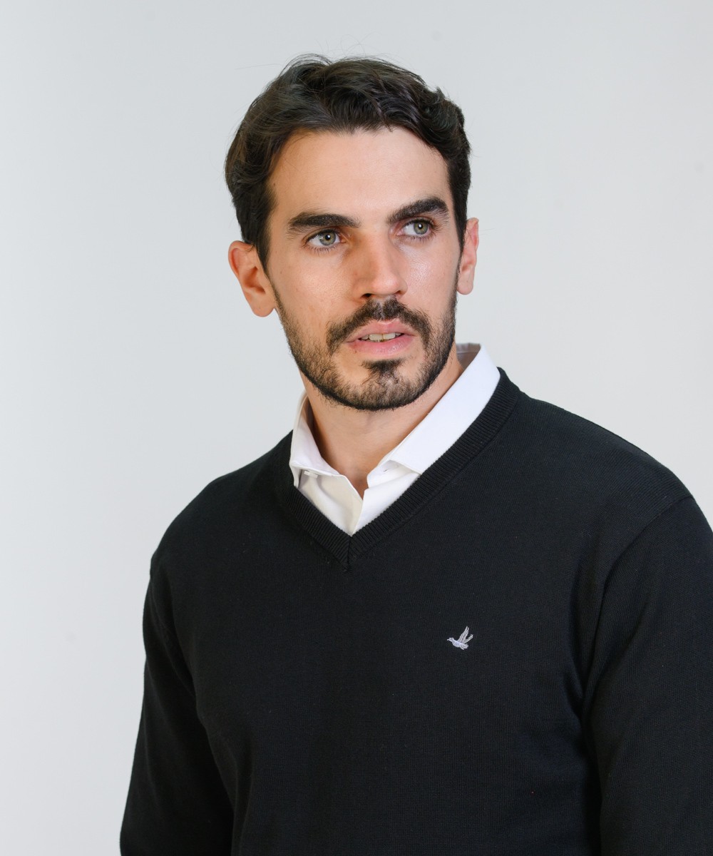 Sweater de hilado 100% algodón, ofrece una sutil textura melange que aporta un toque distintivo y versátil. Su calce regular moderno garantiza comodidad y facilidad de combinar con cualquier estilo. Diseñado con un escote V a la base del cuello, incorpora puños y cintura en punto acanalado para un ajuste equilibrado. Como detalle de identidad, cuenta con el logo de la marca bordado en el frente y una grifa marcaria en el ruedo, aportando autenticidad y exclusividad.