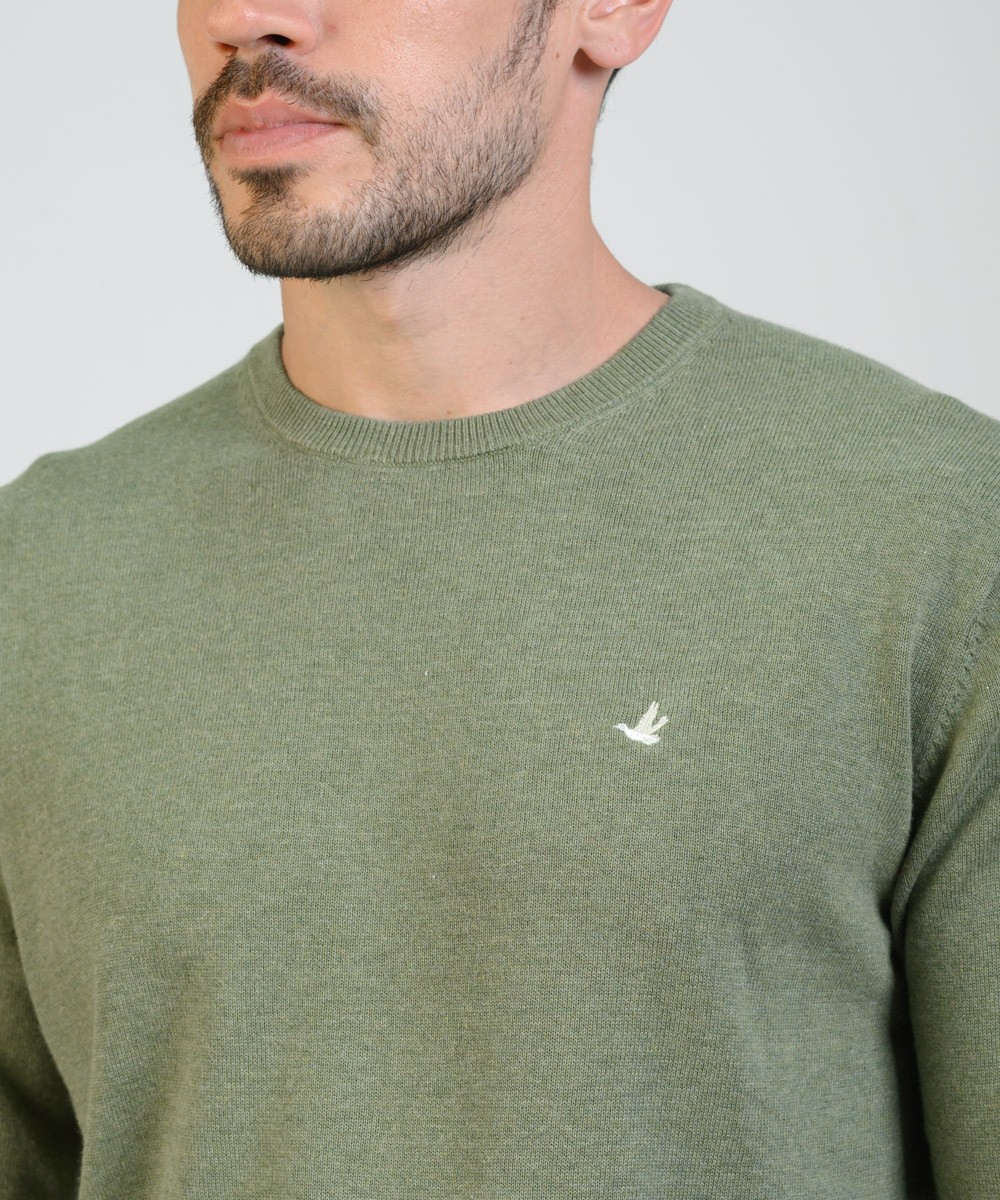 Sweater de hilado 100% algodón, ofrece una sutil textura melange que aporta un toque distintivo y versátil. Su calce regular moderno garantiza comodidad y facilidad de combinar con cualquier estilo. Diseñado con un escote redondo a la base del cuello, incorpora puños y cintura en punto acanalado para un ajuste equilibrado. Como detalle de identidad, cuenta con el logo de la marca bordado en el frente y una grifa marcaria en el ruedo, aportando autenticidad y exclusividad.